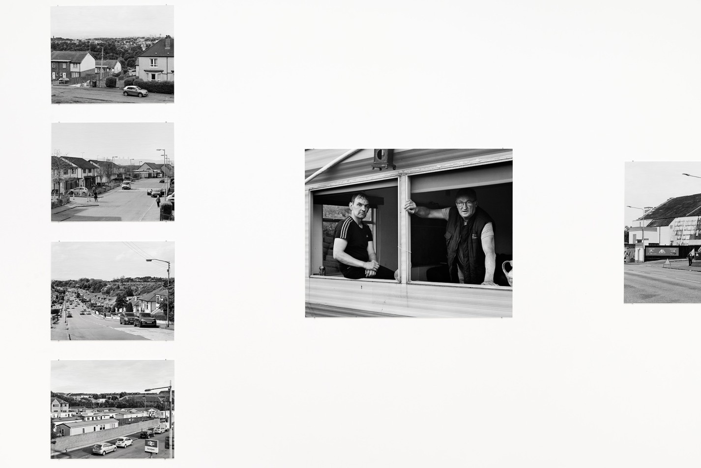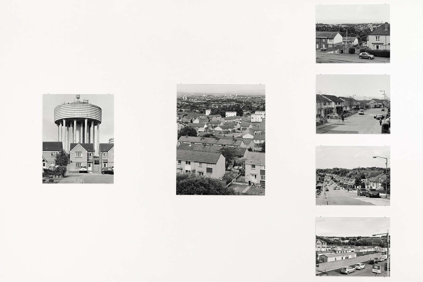 Water tower behind a row of houses, Porchester Street, Glasgow, 2019. Depuis les années 1970 et la restructuration de l’espace urbain par les infrastructures autoroutières, de nombreuses villes satellites, dont Craigend, furent implantées pour reloger la population des quartiers paupérisés de l’East End. Si les promesses d’une vie meilleure ne purent s’y réaliser, depuis quelques années Craigend semble renaître grâce à la promotion immobilière. Désormais il semble répondre aux standards contemporains : maisons individuelles et centre commerciaux à proximité.