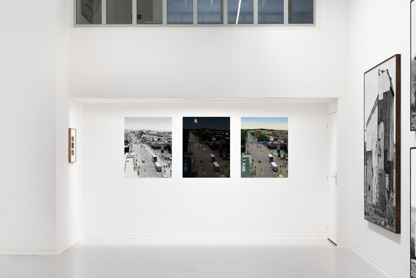 Three views of Jamaica Bridge looking south, Glasgow, 2019. En cherchant des documents iconographiques sur Glasgow je suis tombé à de nombreuses reprises sur des cartes postales du début du 20ème siècle qui avait pour sujet le pont qui enjambe la Clyde reliant Jamaica Street à Bridge Street. Aujourd’hui ce pont porte le nom de Glasgow Bridge pourtant il semble qu’il ait eu de multiple appellation tel que Broomielaw Bridge, Telford's Bridge et de manière plus populaire Jamaica Bridge. La quasi totalité des photographies sont prises en hauteur et regardent le nord de la ville. Deux points de vue, aujourd’hui disparus, diffèrent dans leurs axes, tantôt situé à la droite du pont et tantôt à sa gauche. À une époque ou la photographie couleur était encore à ses balbutiements, ces cartes postales en grande majorité ont été colorisées à la main. Souvent une même photographie peut être traitée différemment, elle devient alors une vue de nuit ou encore une vue enneigée, conférant ainsi à la ville un aspect merveilleux. Walker Evans aborde le charme de ces cartes postale dans un texte qu’il lu durant sa conférence du 11 mars 1975 à Yale : « Les cartes postales furent produites en abondance vers 1900-1915, et elles satisfont le désir simple de reconnaître et de se glorifier. Rendons grâce à la désuétude pour son admirable valeur ajoutée posthume. » Et commentant l’une d’elle il dit alors : « Pouvez-vous imaginer un rassemblement de choses aussi affreuses qui toutes ensemble provoquent comme par enchantement… Eh bien, je ne dirais pas de la beauté, mais une espèce particulière de poésie silencieuse ? »
