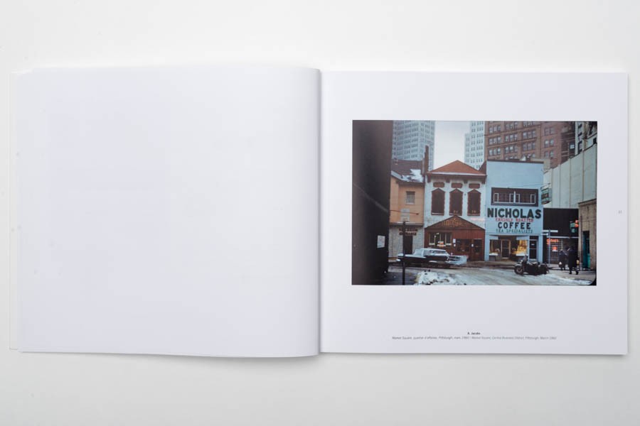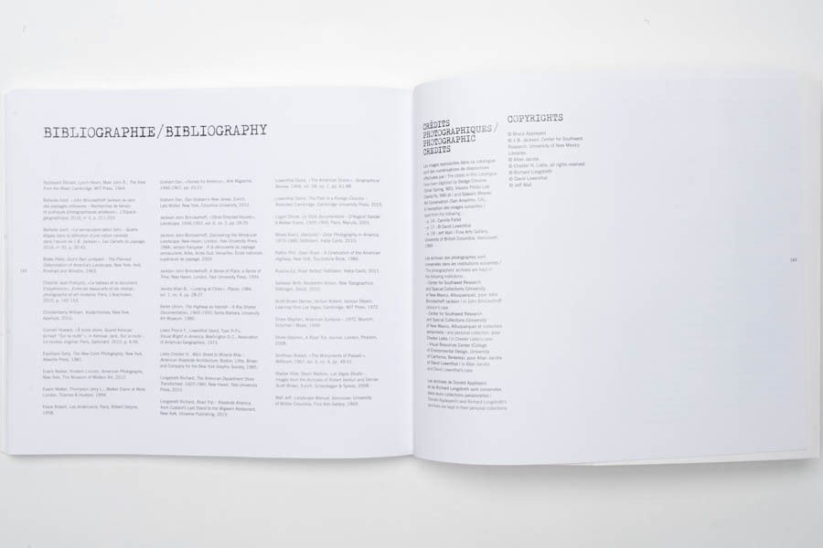 CF: It seemed fitting in the exhibition to compare the photographic notes of these researchers, not only with the work of photographers, but also with works by artists using photography, especially in the form of publications. Apart from the slide shows during their lectures, these researchers mainly displayed their photographs through scientific journals. If the affinities of their images with the works of Walker Evans, William Christenberry or Stephen Shore seem obvious, there is also a formal and conceptual relationship between publications such as Visual Blight in America (1973), in which Lowenthal has greatly participated, or The View from the Road by Appleyard and the articles you mentioned, to which Jeff Wall's Landscape Manual (1969) could be added. In the late 1960s, some North American artists went – so to speak – in the opposite direction of the authors of "Notes on Asphalt". Robert Smithson and Dan Graham, whose practice originated in the field of visual arts, have taken to writing to produce forms connecting text and image, as part of a reflection on the urban environment. For them, photography is only a direct means of generating documents that go with the text. No need for much know-how, only the possibility of capturing a fragment of reality matters ... In this sense, Smithson or Graham break the codes of representation, using small amateur cameras, which allow them to be closer to the subject. In this way they are close to our six researchers. All of them are authors of studies on the American landscape that are now regarded either as scientific research or as works of art. It is interesting to note that Jackson and Graham have a fairly comparable way of seeing the framing of their photographs, which we could also compare to Evans' use of reframing: by fragmenting, they take only what is useful to them.
