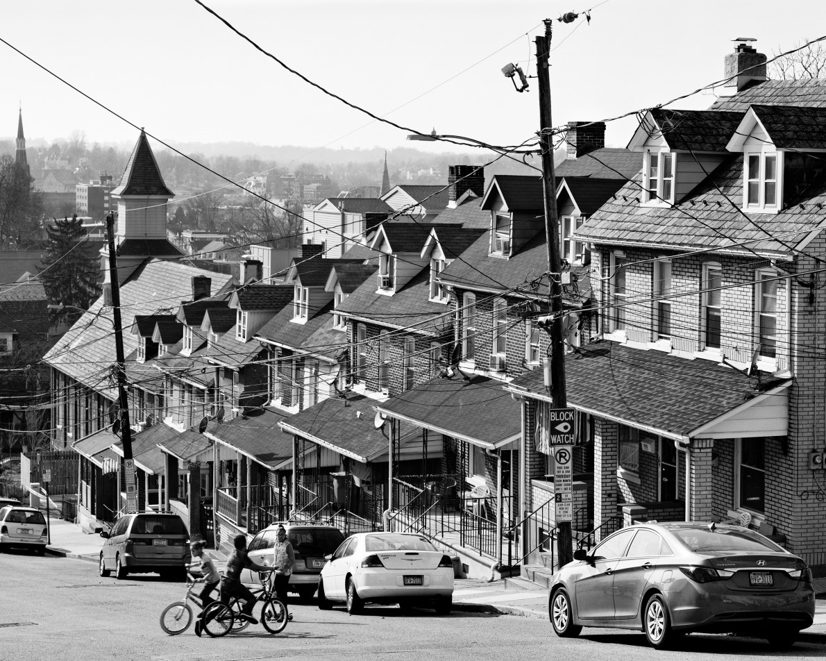 Revisitant une mythologie visuelle des années 30, Camile Fallet emprunte le même point de vue, au même endroit, pour photographier puis tirer en noir et blanc la même scène de rue "Two Family Houses in Bethlehem, Pennsylvania" de Walker Evans.